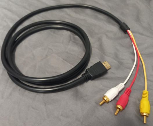 02/20/2022 at 02:53 • 0 commentsFor some time I've had a need here and there to go from an HDMI video source to an analog composite screen of one stripe or another. I should have just bought myself an HDMI to Composite video adapter box, but in looking for one on Bezo's Instant Gratification Engine of Horror a neat prospect kept popping up. A direct HDMI to Composite cable.