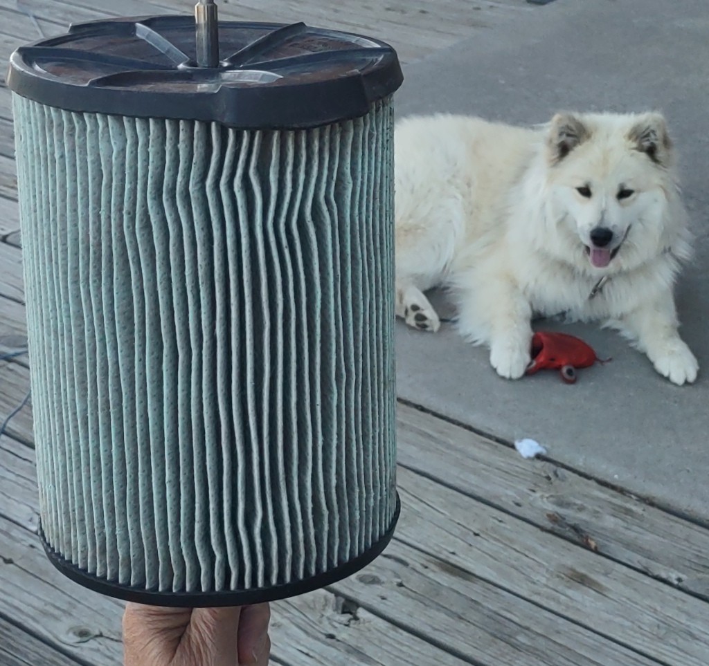 06/29/2024 at 00:54 • 0 commentsIt took me way too long to figure this out. Until a week ago, I would blast the filter with compressed air. What seemed like a dozen cycles and an hour later, the job would be done. One late afternoon, staring at yet another clogged filter, here's what I did: