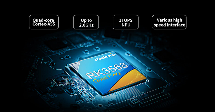 ✨It is equipped with Rockchip’s new — generation AIoT processor RK3568, which is a 64 — bit quad — core Cortex — A55 System on Chip (SoC) based on the advanced 22nm process technology. The built — in Neural Processing Unit (NPU) has a processing performance of up to 1TOPS.