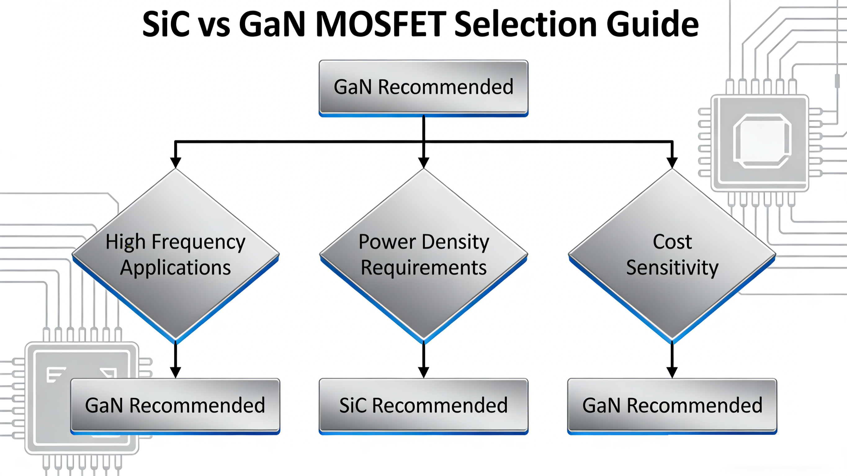 3. Extreme cost sensitivity with low performance requirements: Consider silicon-based devices; when balancing performance and cost, evaluate the cost-effectiveness of GaN (single-device replacement for multiple silicon components) or SiC