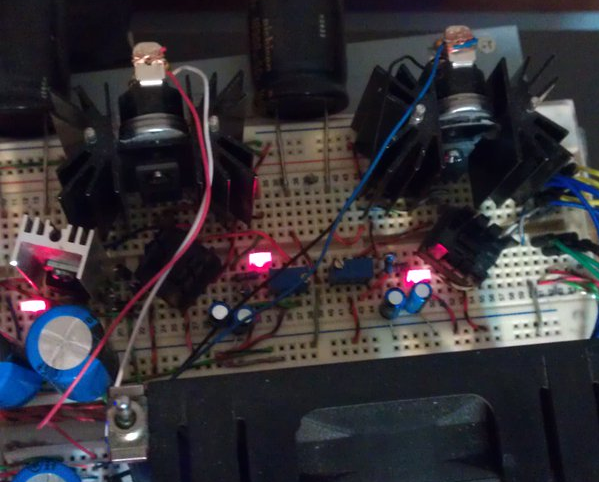 constructing a very early version of the H-bridge to test. This was the first