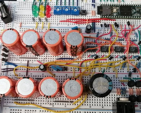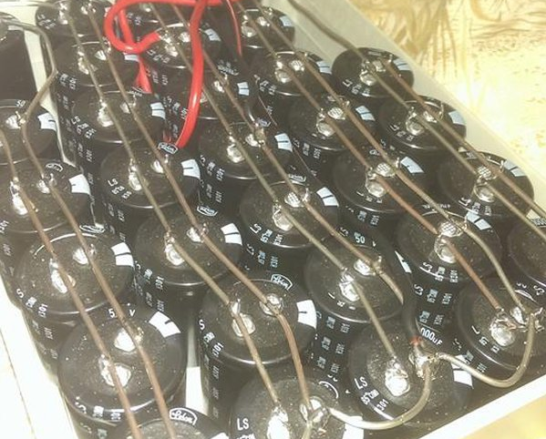 09/02/2021 at 06:45 • 0 commentsA 50V capacitor bank made up of 10mF caps (31 of them). The total