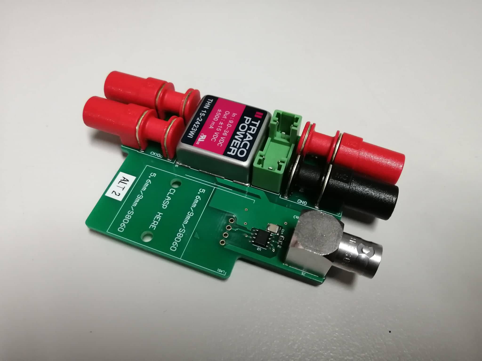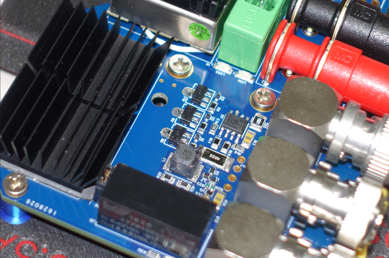 protection, buttons, buzzer. I/O is primarily terminal headers and BNC