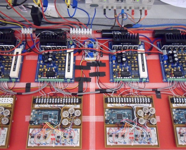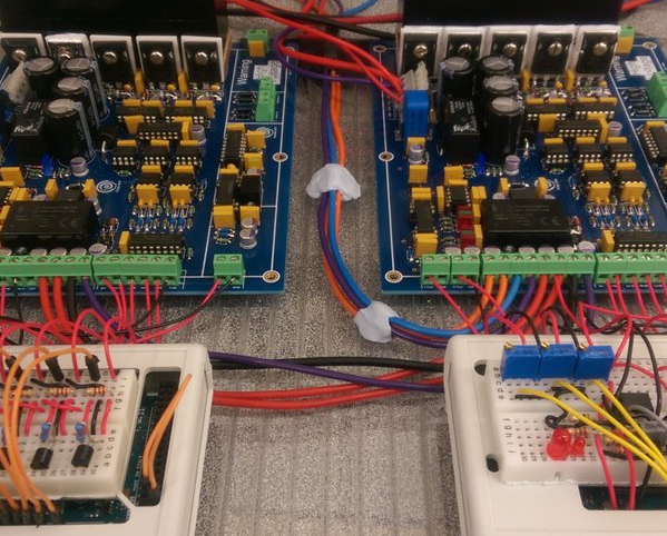 09/02/2021 at 06:56 • 0 commentsI put together 4 control boards and 4 H-Bridge power stages to make a