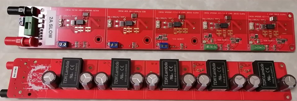 Based on the 5kV/20pF isolated TDK-Lamba PXG-M15 15W DC-DC modules series, this board takes an input of 40-60V and converts it to various isolated voltage sources. Select outputs feature the LT3045 & LT3094 ultra-low noise linear regulators.