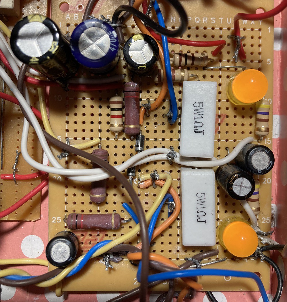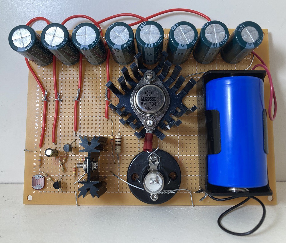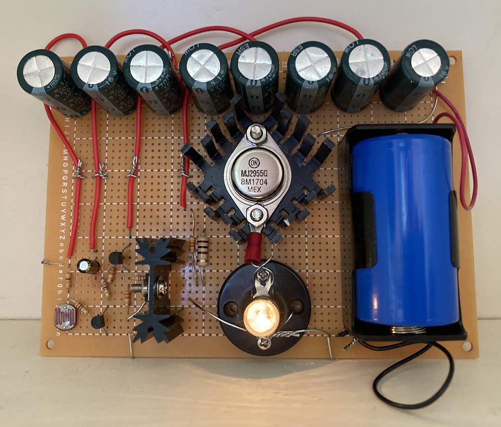 The big 4,700 uF capacitors are used to prevent power supply oscillations due to power supply surges that occur when the light bulb is turned ON or OFF.