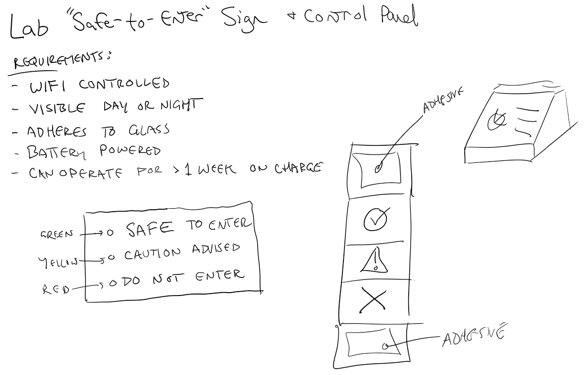 I primarily work from home, and a significant source of my daily distractions are from the Wife and Pup. Currently, my wife can't easily tell if I'm on an important call, working on something dangerous or sensitive, or just trying to focus in on a task. We needed a new way for sharing this info quickly and reliably.