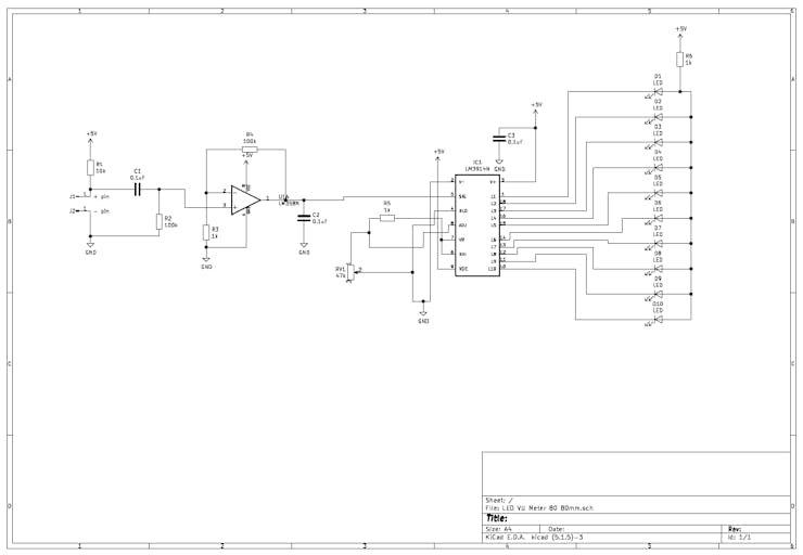 - Op-amp LM358 and, LM3914 (10 bit comparator),