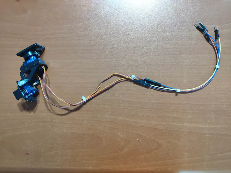 Then, I assembled the mini pan-tilt kit with two SG-90 servo motors and connected them to the board - Servo_1, Servo_2.