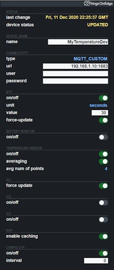 Cricket comes with a built-in temperature sensor. We just need to configure it to send temperature value to our MQTT broker by setting the RPi IP address.