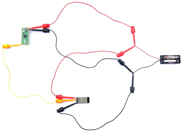 We are going to power both Pico and Cricket boards independently from the AAA batteries so they both have independent power sources.