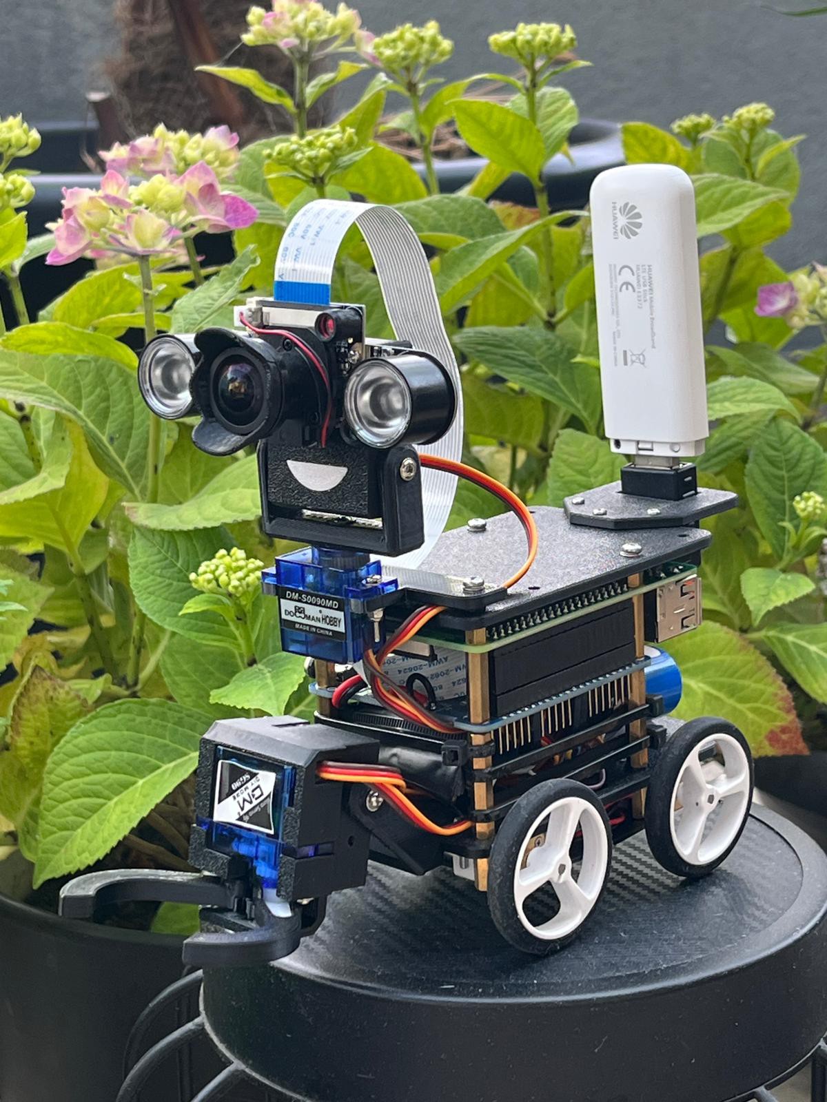 Hardware: Inside is a Raspberry Pi 3, 3B+ or 4B SBC, connected to the internet through the mobile data USB stick. A SIM card is not included, a mobile data subscription must be purchase by the patient, these are usually in the range of 5.- to 20.- CHF / $ per month depending on ISP (as of 2022), for estimated 5 GB - 10 GB per month with an upload speed of at least 50 Mbit/s. The Robot has a pan & tilt mechanism with camera, 2x LED spotlights,...