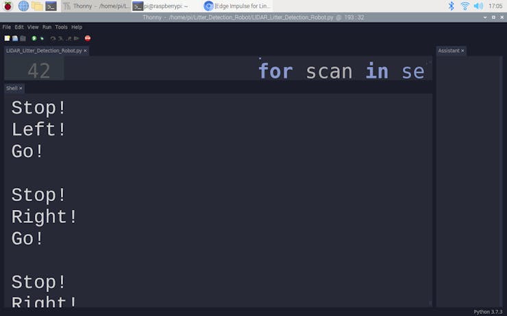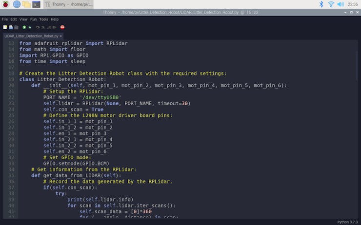 After completing the code and attaching the lidar (RPLIDAR A1M8) to the robot chassis, I tested the obstacle avoidance system of the litter detection robot on the shell. As far as my experiments with the robot go, the obstacle avoidance system works impeccably :)