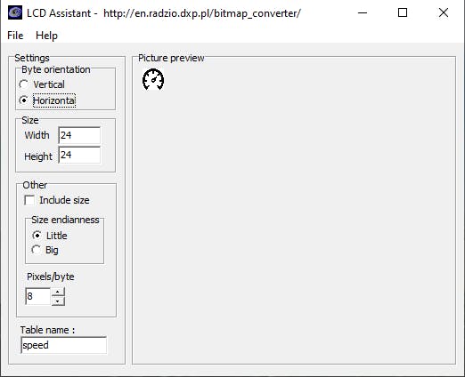 ⭐ To display an image with the SSD1306 OLED screen, download the LCD Assistant, upload a monochromatic bitmap, and select Vertical or Horizontal depending on the screen type. Then, convert the monochromatic bitmap to a data array.