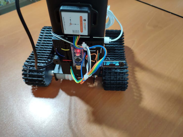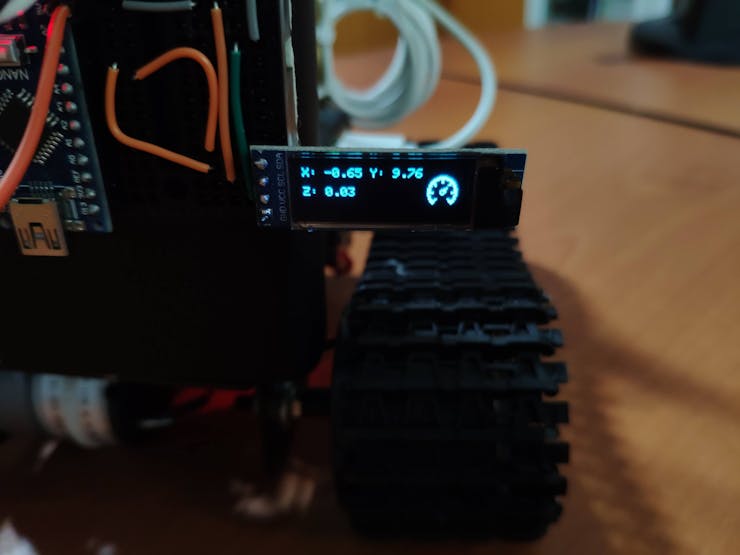 // Connections // Raspberry Pi 4 : // L298N Motor Driver Module // GPIO 17 ----------------------- IN_1 // GPIO 27 ----------------------- IN_2 // GPIO 22 ----------------------- EN_A // GPIO 10 ----------------------- IN_3 // GPIO 9 ----------------------- IN_4 // GPIO 11 ----------------------- EN_B // // // Arduino Nano : // DFRobot Serial 6-Axis Accelerometer // D11 --------------------------- TX // D12 --------------------------- RX // SSD1306 OLED 128x32 // A4 --------------------------- SDA // A5 --------------------------- SCL // Buzzer // D10 --------------------------- S