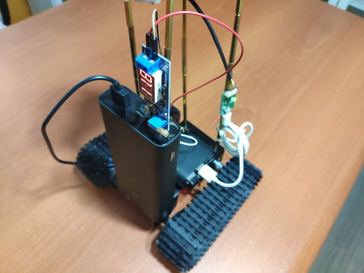 To supply the Raspberry Pi 4 and the L298N motor driver module, I used a Xiaomi 20000 mAh 3 Pro Type-C Power Bank. I connected a USB buck-boost converter board to the Xiaomi power bank to elicit stable 12V for DC motors of the robot chassis.