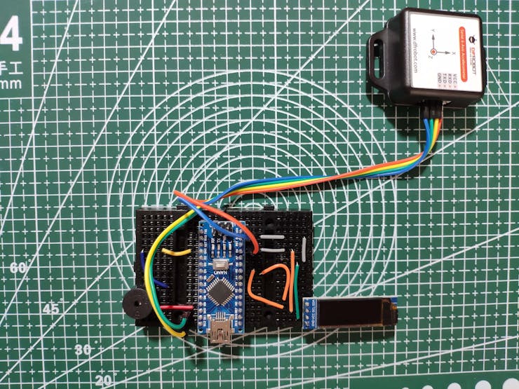 ⭐ If the angle measurements of the X and Y-axis are smaller than the given threshold (-50), activate the buzzer to notify the user about the detected fall.