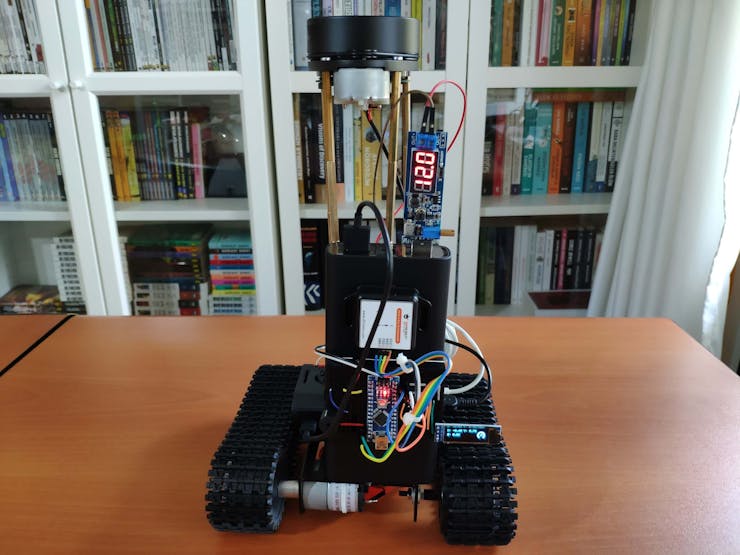 After training the model and running it on Raspberry Pi, I designed and assembled my autonomous litter detection robot with an RPLIDAR A1M8 360 Degree Laser Scanner (Lidar), a robot chassis, and a USB webcam. Then, I built a fall detection system with an Arduino Nano and a 6-axis accelerometer for the robot to forfend it against crashes.