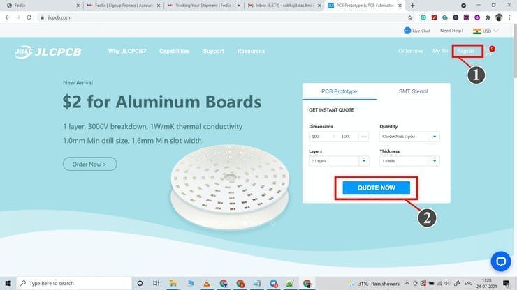 1. Visit https://jlcpcb.com and Sign in / Sign up