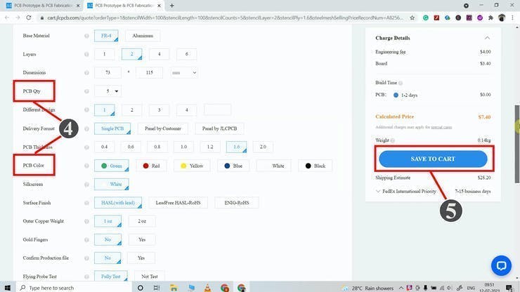 5. After selecting all the Parameters for PCB click on SAVE TO CART button.