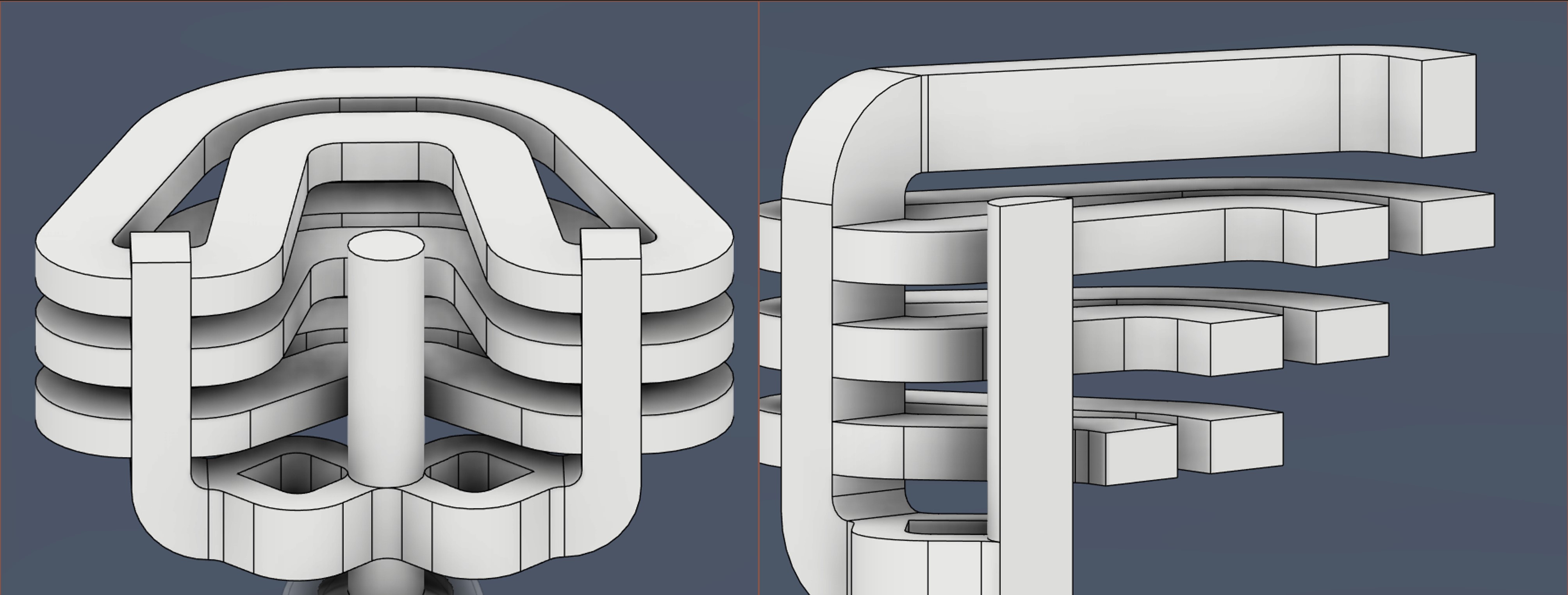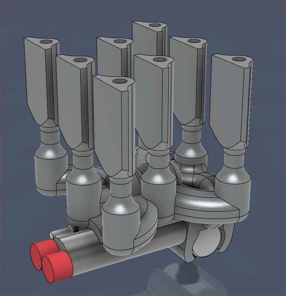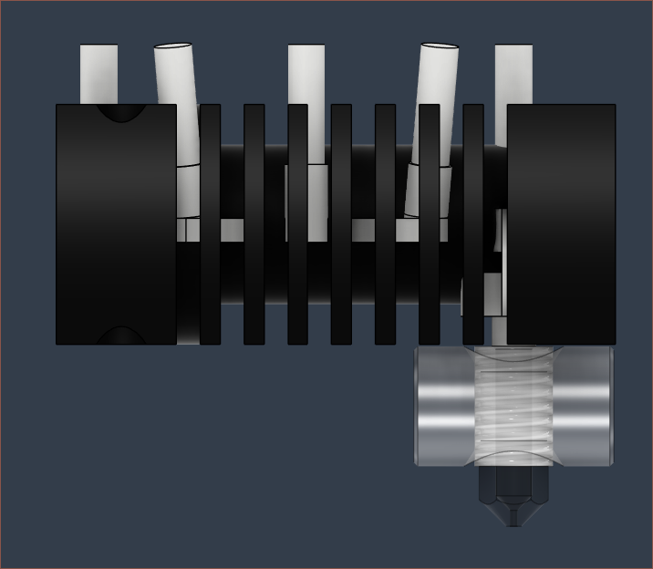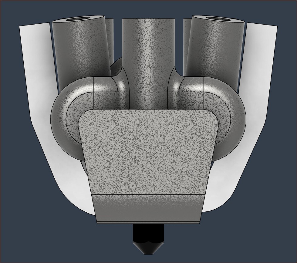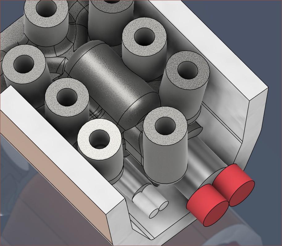 Currently, I've modelled 1.8mm ID 2.8mm OD tubes to try and balance powder removal, ease of drilling and lack of heat conduction.
