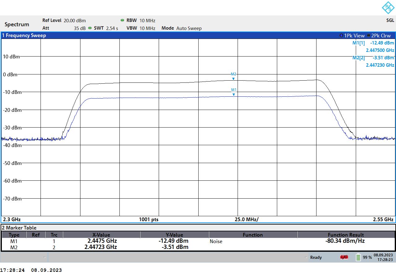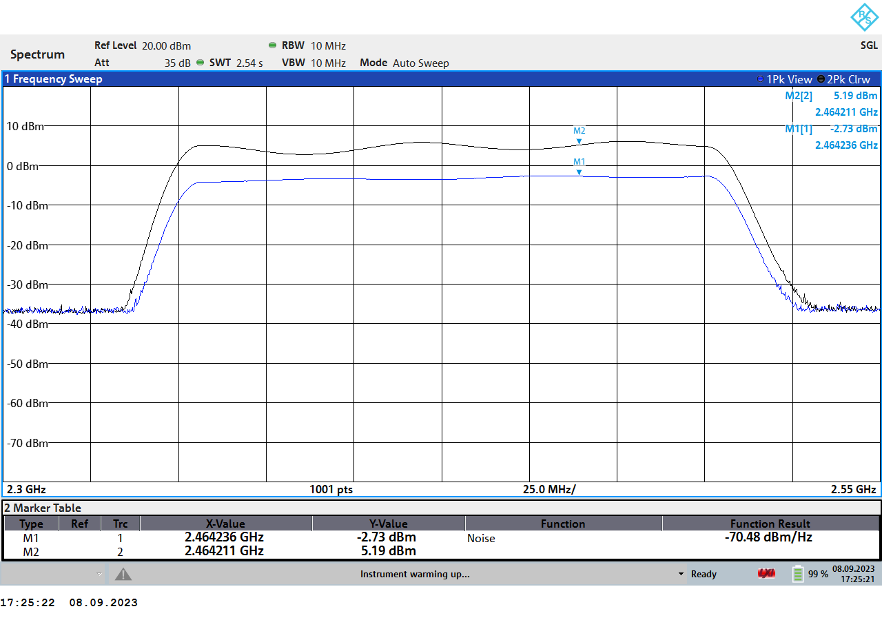 - 10dB attenuator at RF2126 module input improves gain flatness, so seems like the signal generator source impedance is not perfectly equal to 50 Ohm. See the log for the second module modification results.