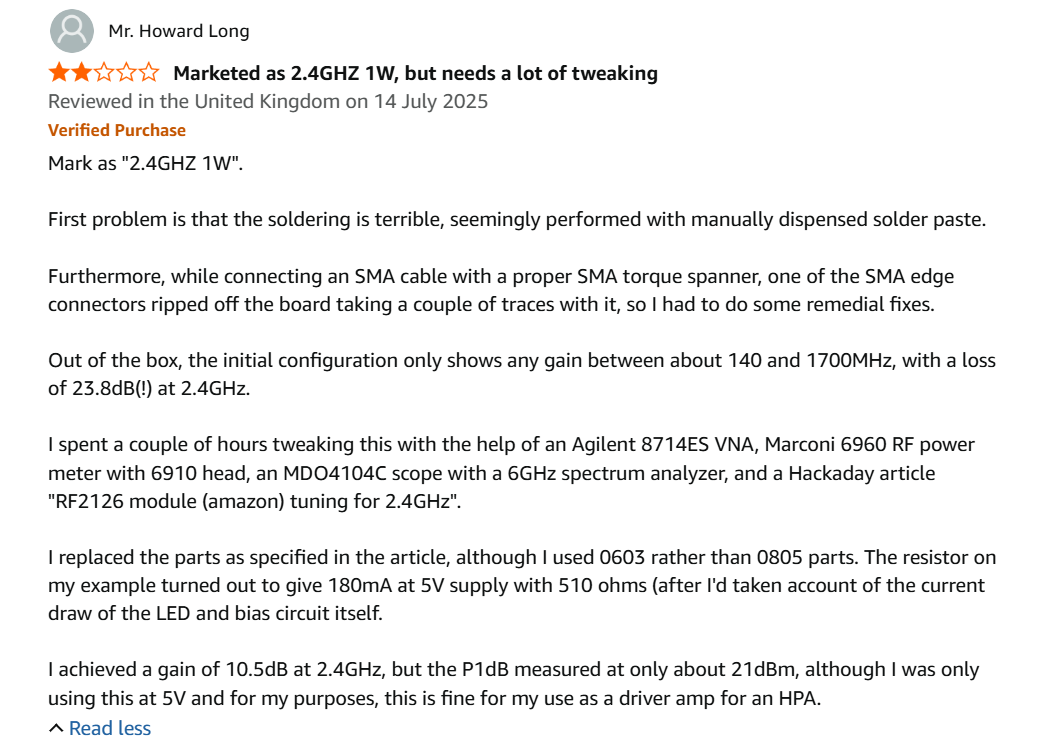 - But the power gain was very bad, with no amplification at all at 2.45GHz.