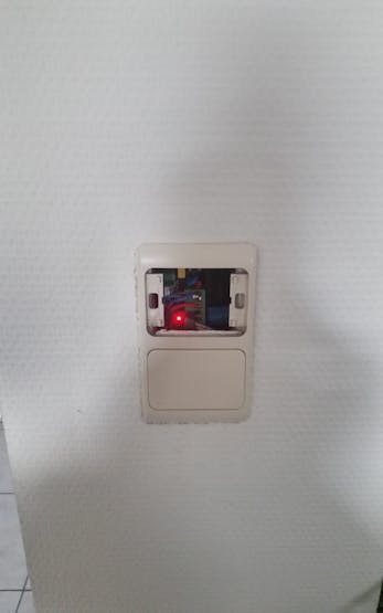 Here’s how it looks when installed on a wall mount junction box on an old apartment building.