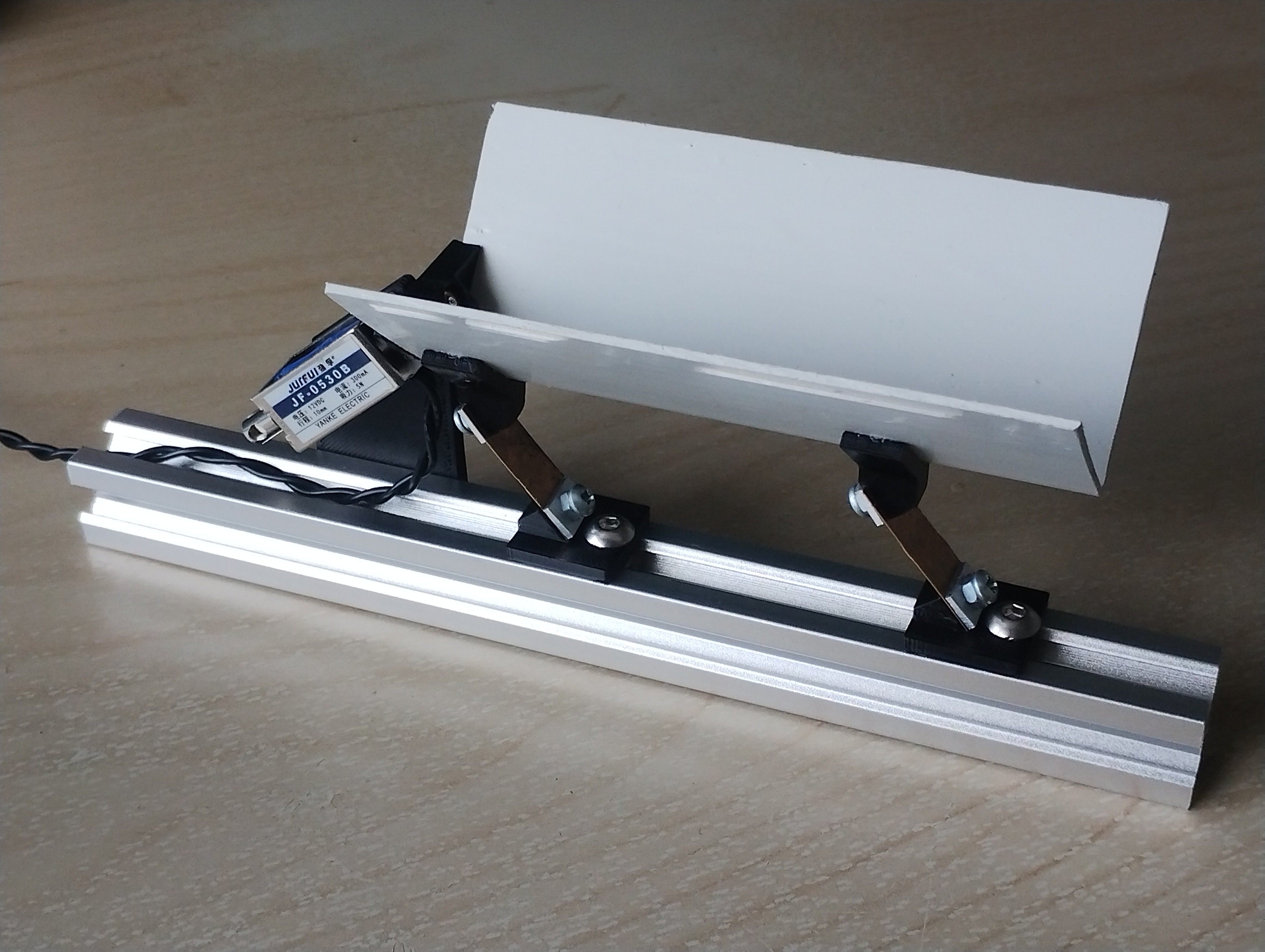 Finally, the diverter is designed to be short and have very low mass (low inertia). It limits the overall machine throughput because it determines a) how long a piece takes to transit between sensor and output bin, and b) how quickly it can move around to the next bin if required.