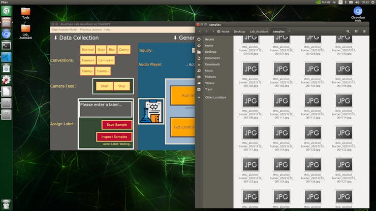 In order to construct my data set, I established a basic laboratory, including various lab equipment related to biology, chemistry, and physics. After applying and testing different OpenCV features on the camera feed for each lab equipment, I collected my data samples so as to construct a notable data set.