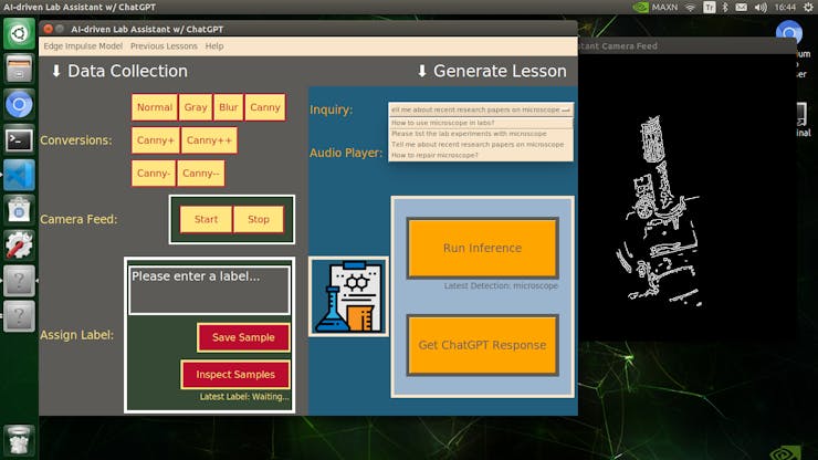 In the following steps, you can find more detailed information on coding, applying OpenCV features to the camera feed, generating ChatGPT-powered lessons, converting lessons to speech, and developing a full-fledged user interface (Tkinter).