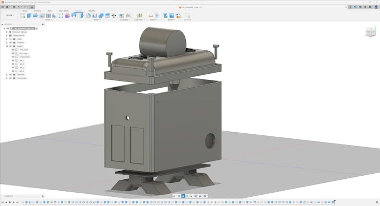 Since I loosely follow the design structure of BMO, I decided to print different BMO figures to accompany my lab assistant as a reminder of the original design. Even though BMO has operating legs, I decided to design rigid and detachable legs so as to simplify my iteration's assembly process since it is intended to be a compact lab assistant.