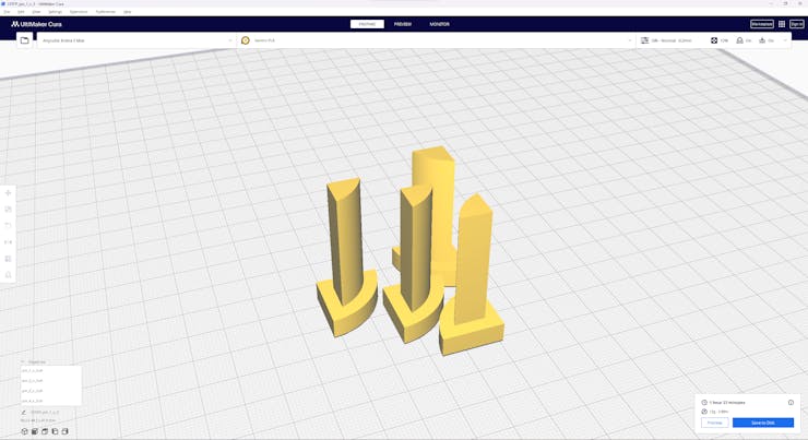 Then, I sliced all 3D models (STL files) in Ultimaker Cura.
