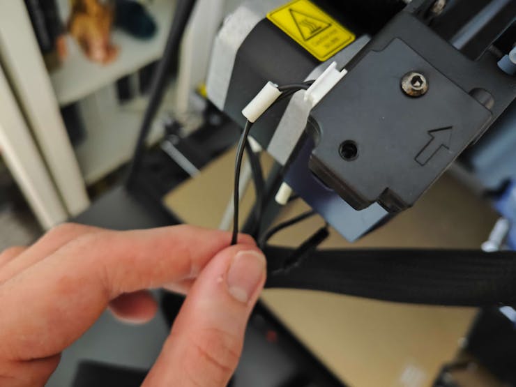 #️⃣ Connect the stepper, switch, screen, and print head cables. Then, attach the filament tube and use cable ties to secure the cables properly.