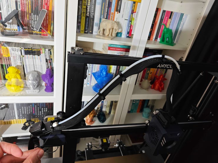 #️⃣ Finally, fix the filament tube with the cable clips, install the filament holder, and insert the filament into the extruder.