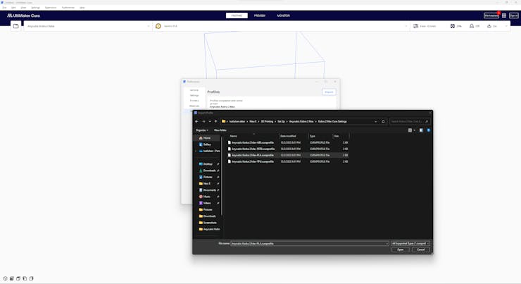 #️⃣ Then, import the printer profile (configuration) file provided by Anycubic, depending on the filament type.