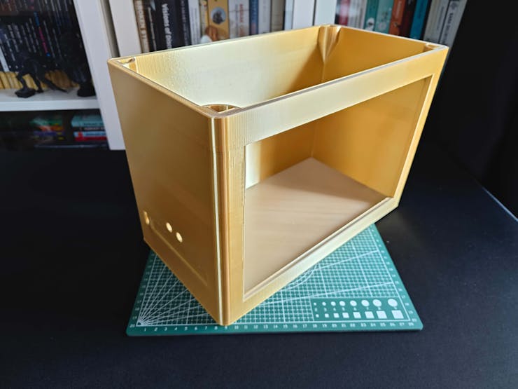 I designed the main case, the removable top cover, the detachable legs, and triangular screws in Autodesk Fusion 360. You can download their STL files below.