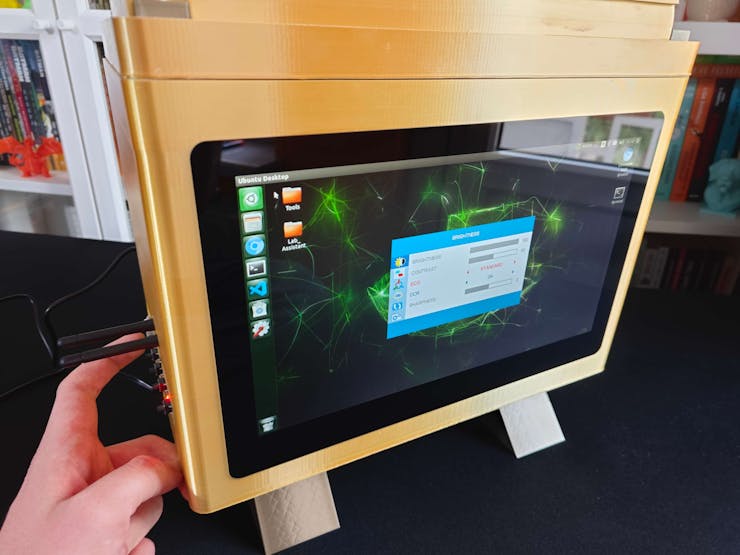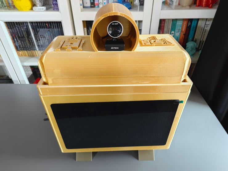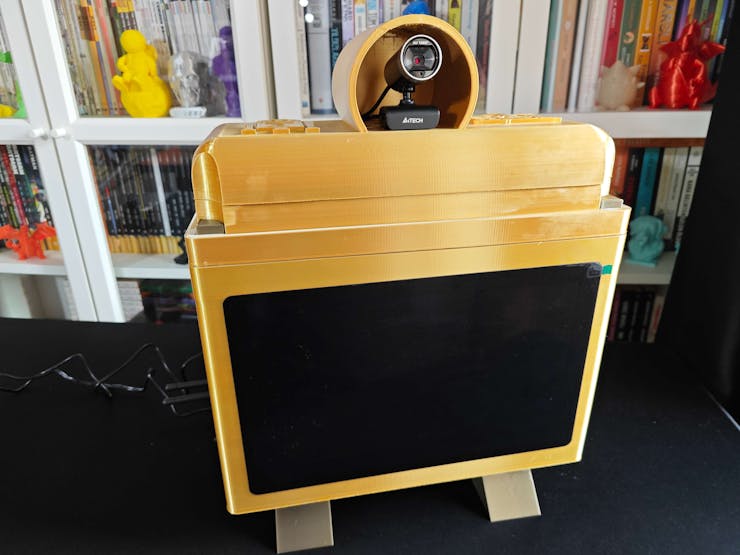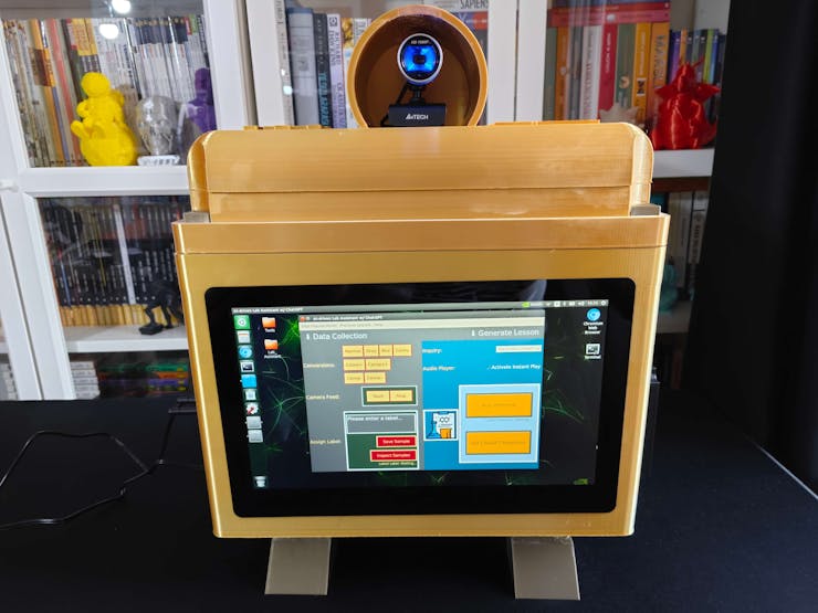 Considering I wanted to make this lab assistant a compact plug-and-play device, I designed a BMO-inspired (from Adventure Time) case with removable top and bottom parts (3D printable) that allow the user to attach the 11.6” touchscreen module, USB webcam, external speakers, and the OSD adjustment board. Also, the main case includes slots for AC8265 NIC antennas.