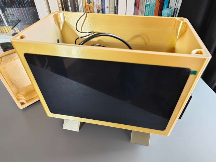 After printing all parts (models), I fastened the touchscreen module into its slot on the main case via the module's integrated 3M adhesive frame.