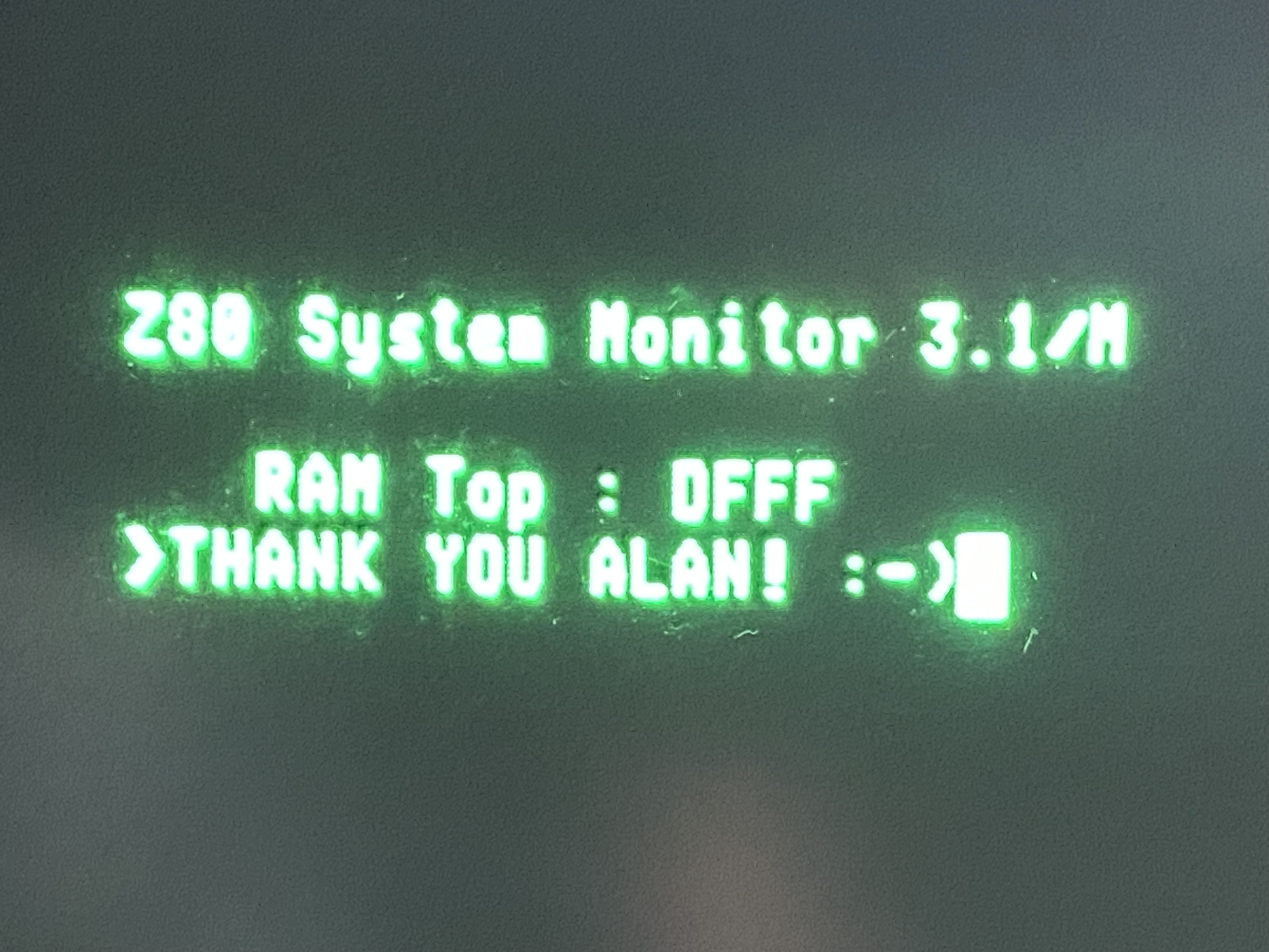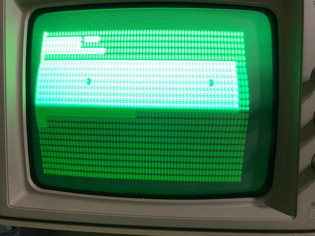 The initial display problem was that although the boot prompt displayed correctly with my VDU2K fitted, proceeding beyond the boot prompt produced the curious result of all white space displaying as a zero character and any text characters displaying as the digit 6. With the borrowed MZB-3 card fitted, even the DMON boot screen had only 6 and 0 characters. The borrowed VDU2K card was exactly the same as my VDU2K, with 6 and 0 characters only, with either CPU card fitted.