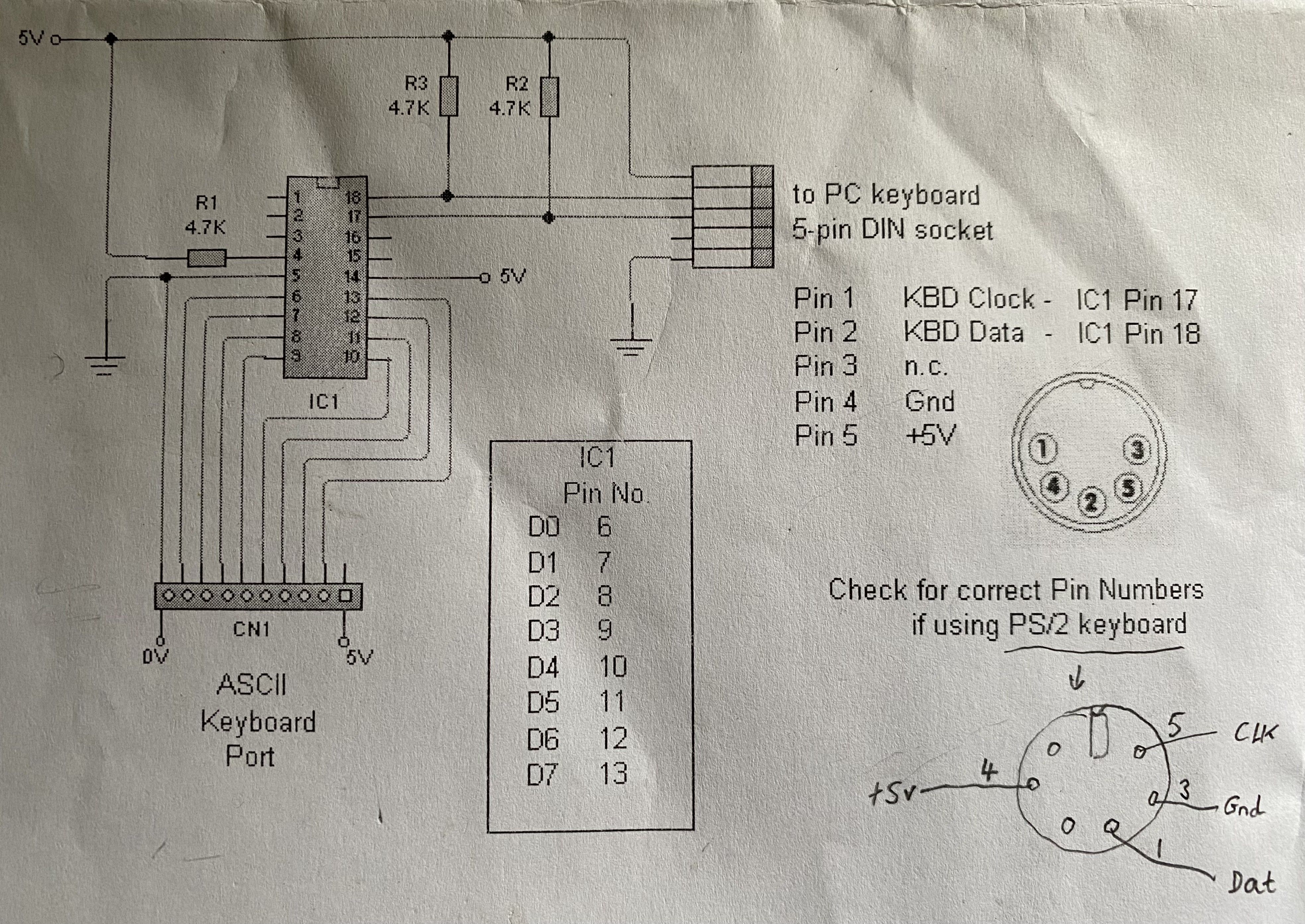 With an assembled LKP-1 card, I met the next problem. The LKP-1 interface is designed for an ASCII keyboard. These are now hard to find, and commensurately command ridiculous prices. I needed an alternative.