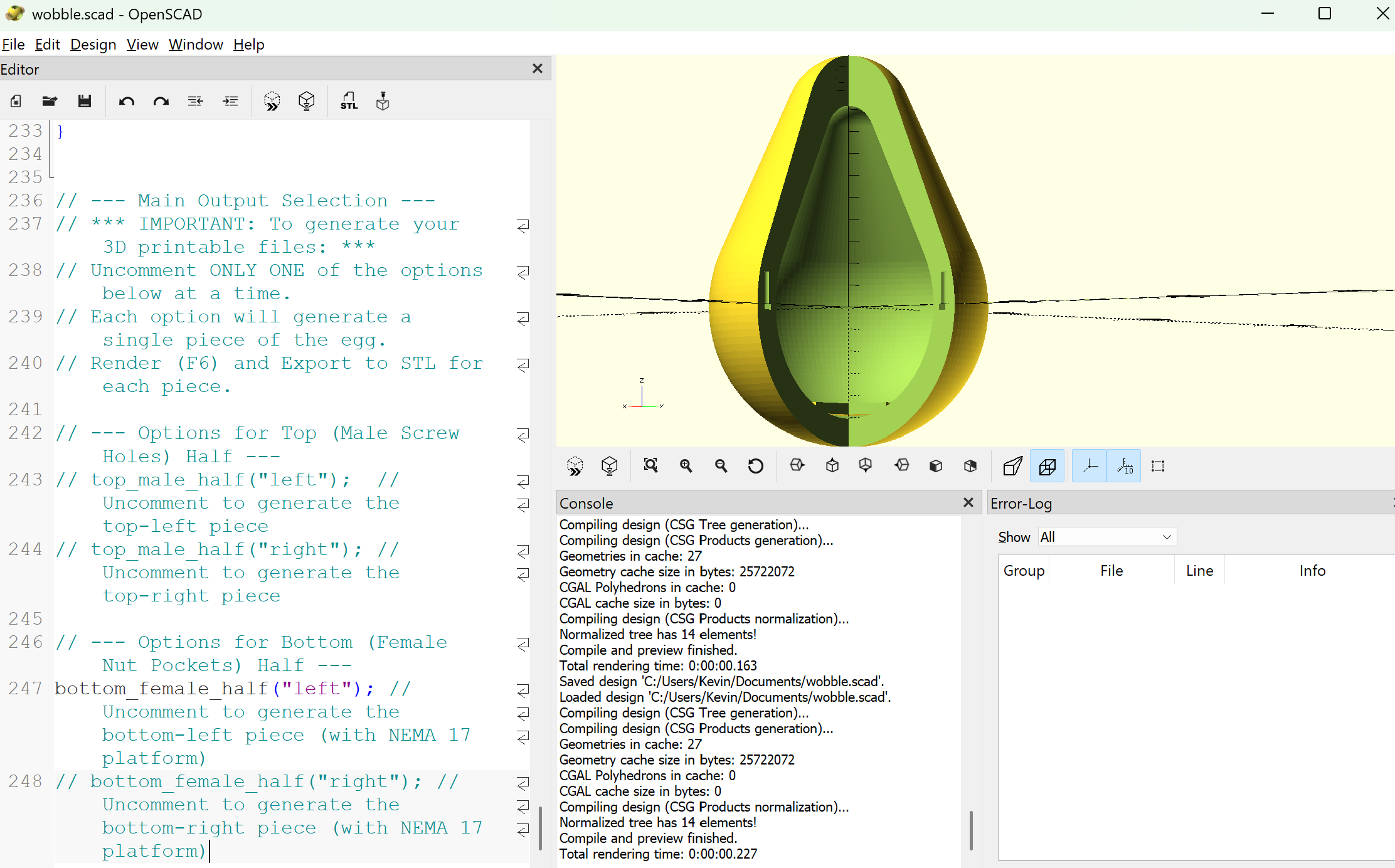 I'd like to figure out how to create a nice 3D printed egg shape that can hold a circuit board, battery, and motor assembly. I'll start by printing off some free variants from thingiverse. Ultimately I want the egg to be quite large and at least 6 inches tall.