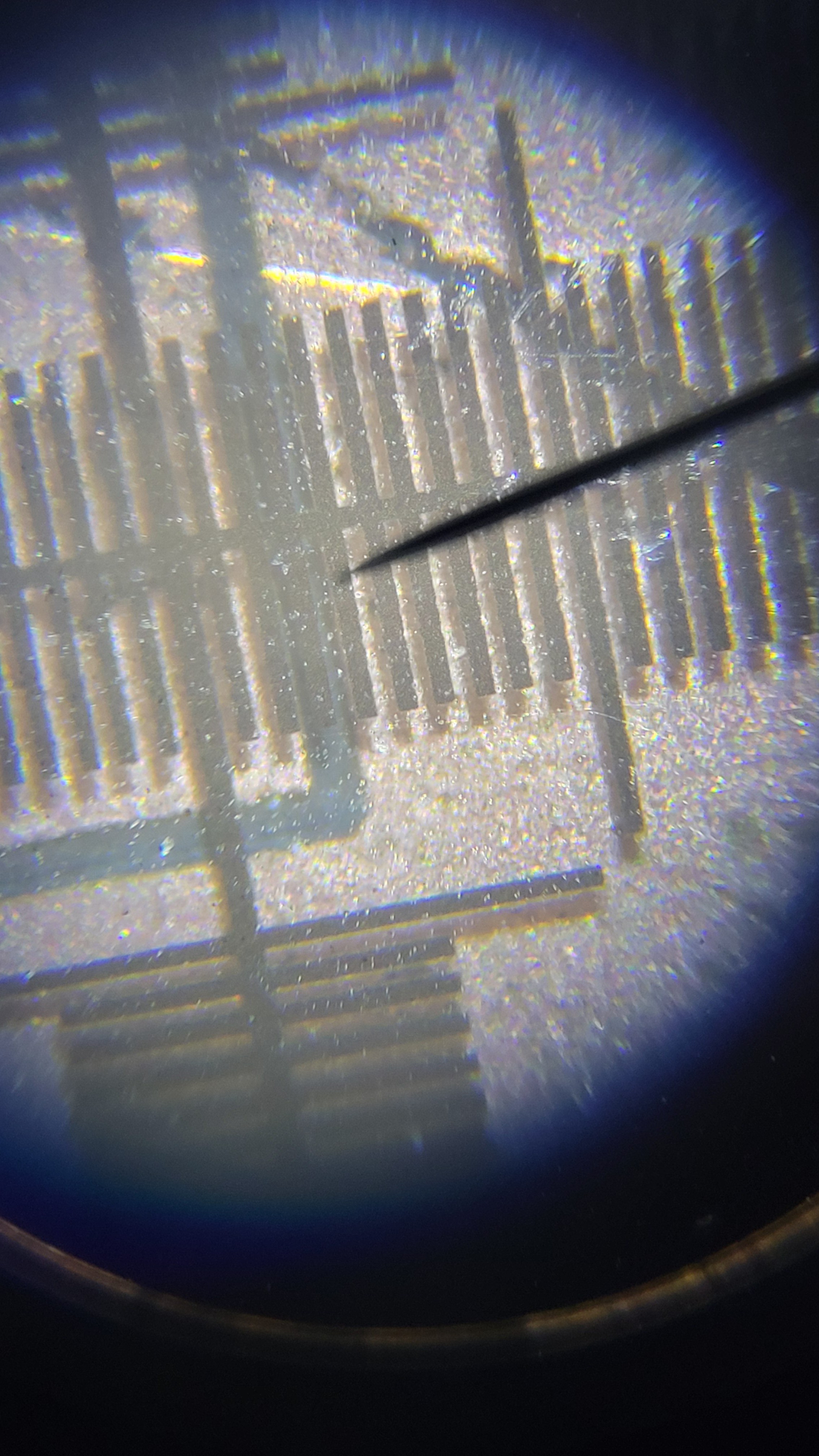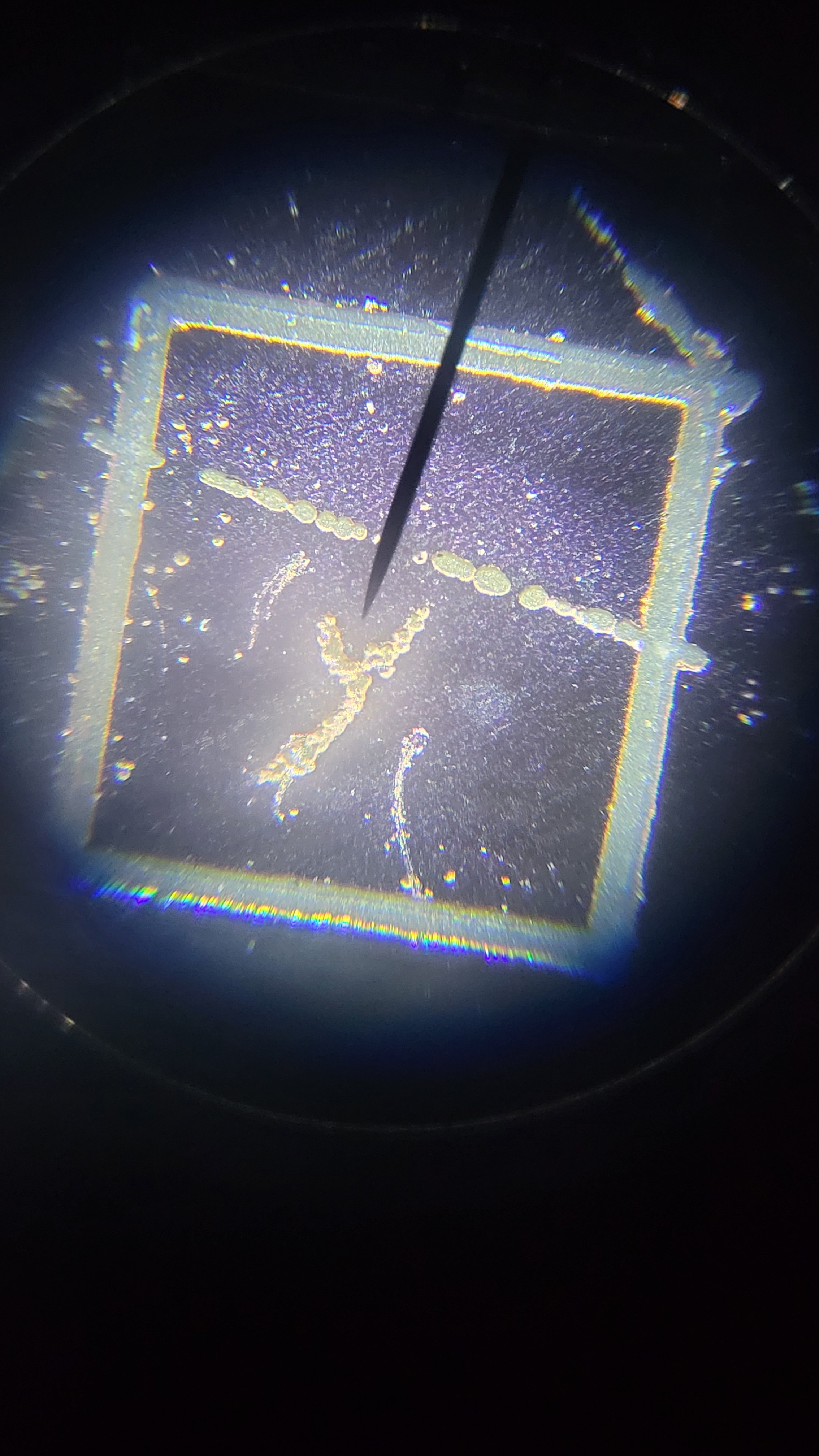 Here is example of 0.5mm chip layout, it's totally erased. Let's take a look at it under the microscope