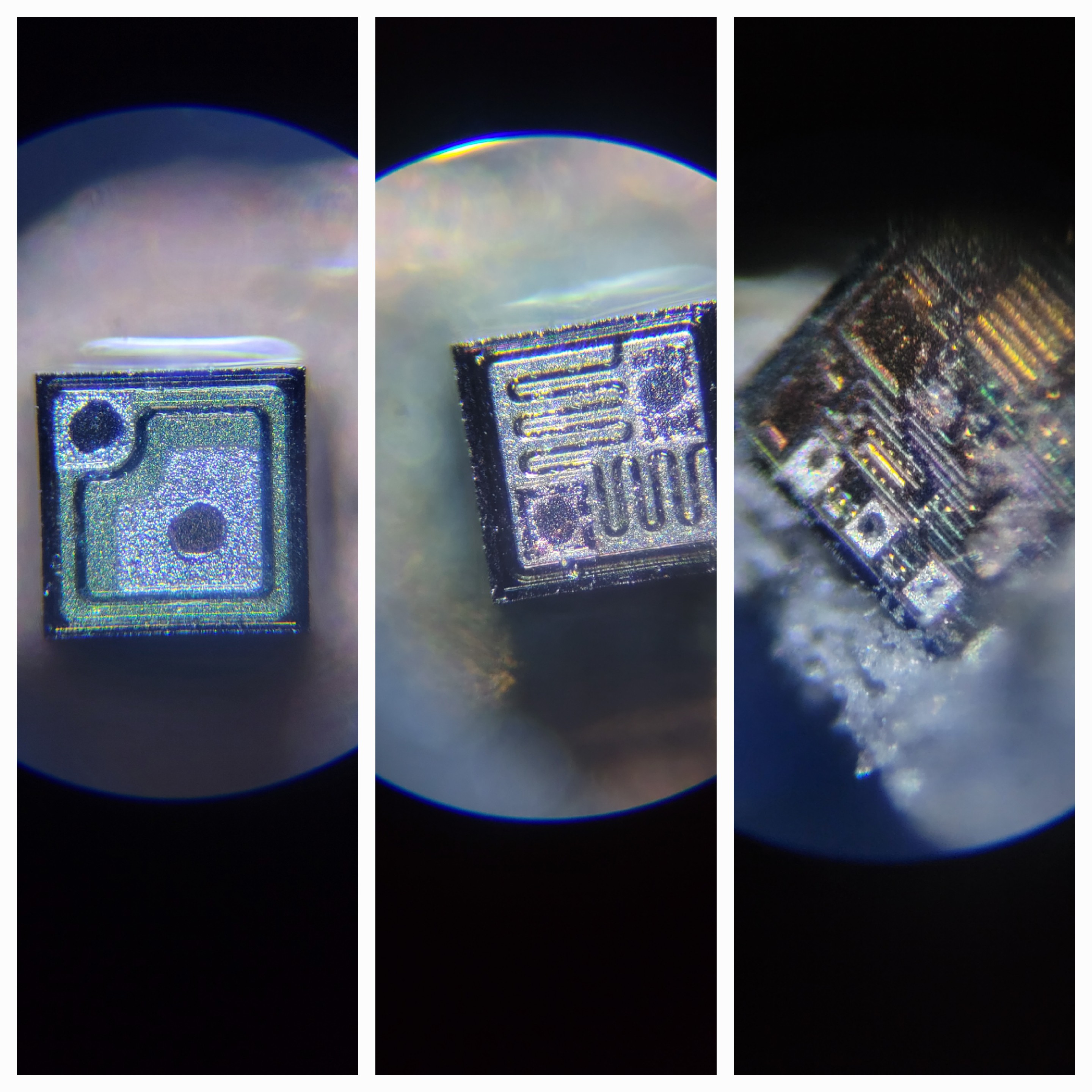 Now, I've tried to decap using cheap IR laser the results are interesting. Here is the target after decapping