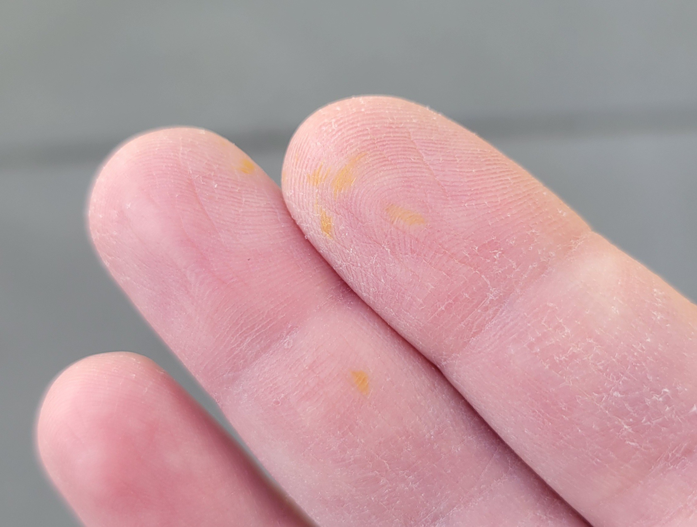 Also my hands got some ... You can see orange spots. Luckily the acid is not to concentrated.