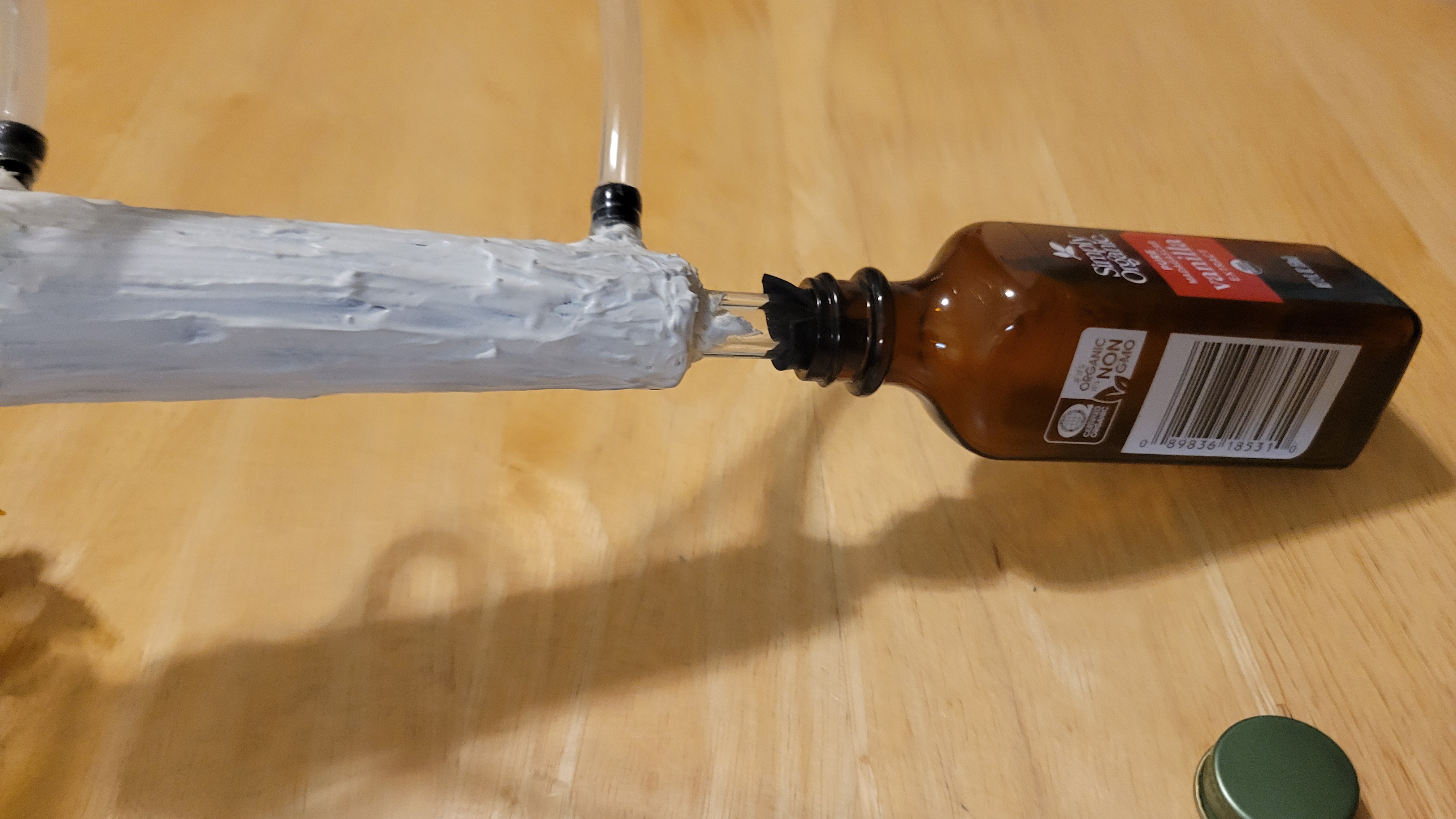 So instead of buying lab equipment (and making everything huge) will try to place a bottle on the flask's arm and seal it with Viton rubber band.