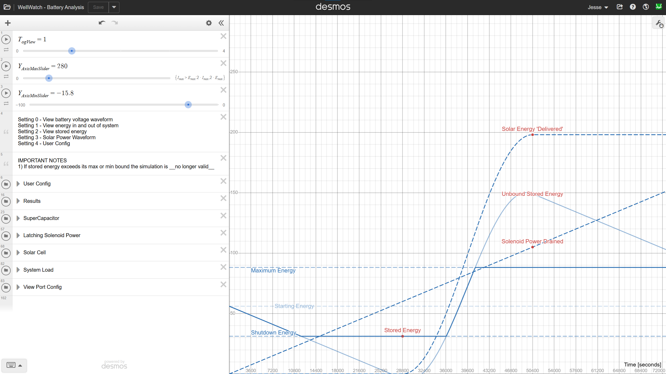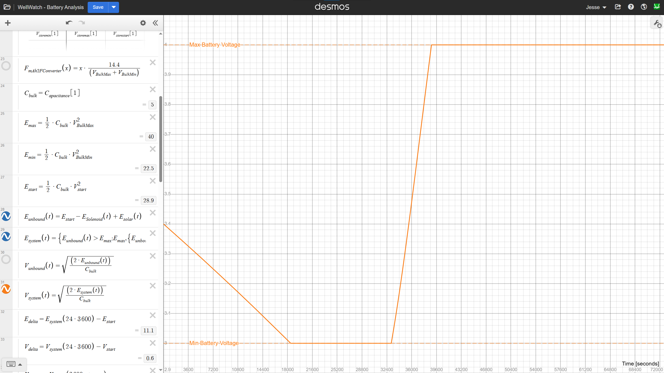 The model had to be detailed enough to capture subtle droops in stored energy. This allows me to then assess voltage margins ensuring that the system remains operational throughout the day. In particular, I’m focused on tracking the minimum voltage across the energy storage element.