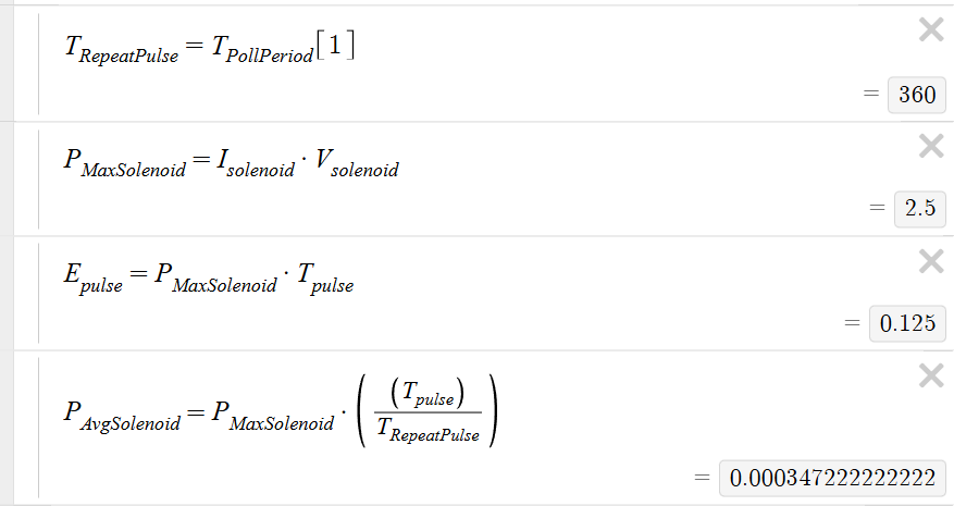 With our assumptions, we can model the average power draw of the solenoid subsystem as…