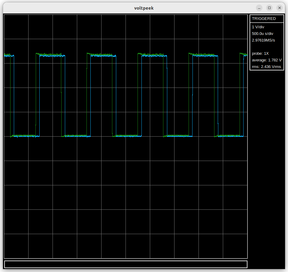 Voltpeek is the software written to control and display the data that is sampled using NS1. Unlike other PC based oscilloscope software, Voltpeek is a command based UI. This is done because click and drag based UIs can be extremely annoying when they are controlling complicated processes. Voltpeek has a similar user interface to Vim. Different commands control the system, and the software can be put in adjustment mode. Adjustment mode is used to adjust the scales, cursors, and trigger level using the h, j, k, and lkeys.