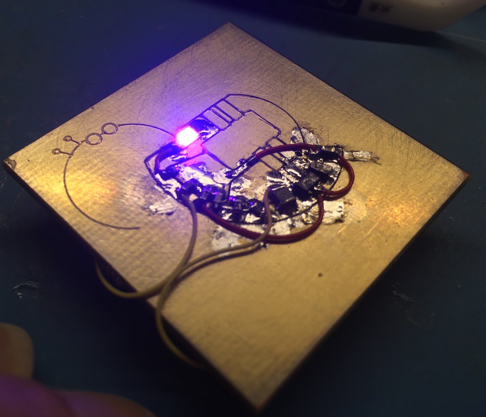 And an update, from Pasadena on the morning of my talk! I also used it to design and fabricate Board Three, a simple add-on with a Supercon8 theme, which I'll add a photo of here at some point. Perhaps the first custom machine-fabricated circuit board to be made at the conference? I can't imagine no one brought a desktop mill at some point, so I won't claim that yet.